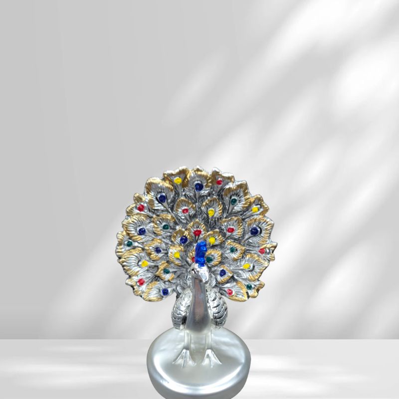 Place this Gold & Silver Plated Decorative Peacock in your living space or temple area and let it radiate grace, beauty, and auspicious vibes all around.