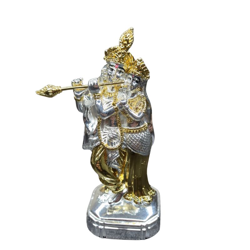 Bring home the divine charm of Radha and Krishna, beautifully crafted with Krishna holding his Murli (flute) and Radha standing gracefully beside him. This idol reflects divine love, devotion, and spiritual bliss, making it a perfect addition to your puja altar, living room décor, or gifting.