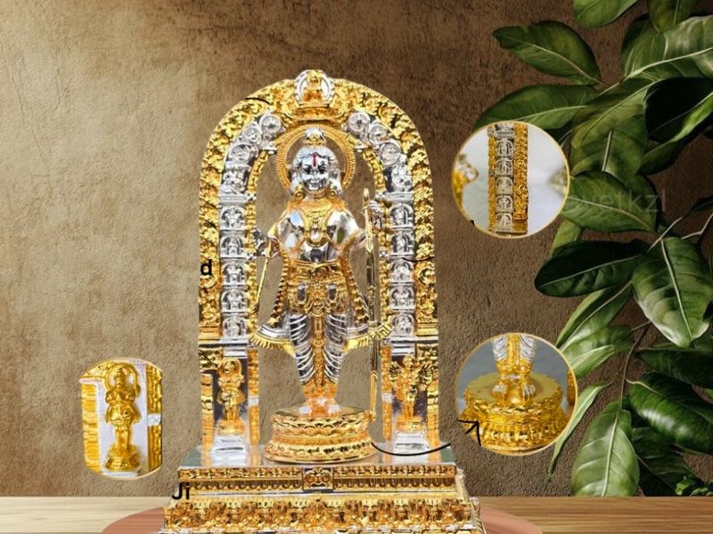 The radiant gold finish embodies divine light, while the silver accents bring an ethereal charm to the design. Meticulously crafted with care, this Shri Ram Lalla Murti is a true work of spiritual art, designed to inspire faith and reverence.