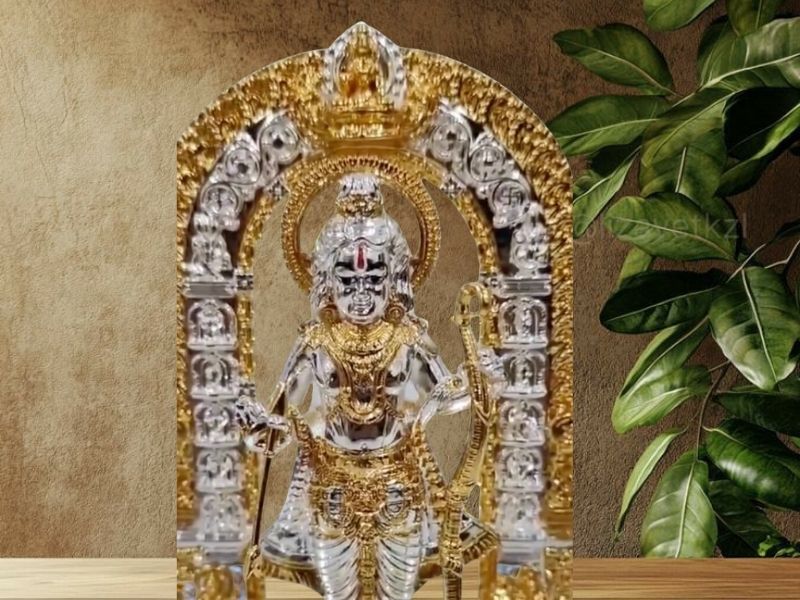 Experience the sacred presence of Lord Rama through this exquisitely crafted murti, where the brilliance of gold and silver plating unites with the divine aura of the beloved deity. Each detail reflects devotion and artistry, symbolizing purity, protection, and divinity.