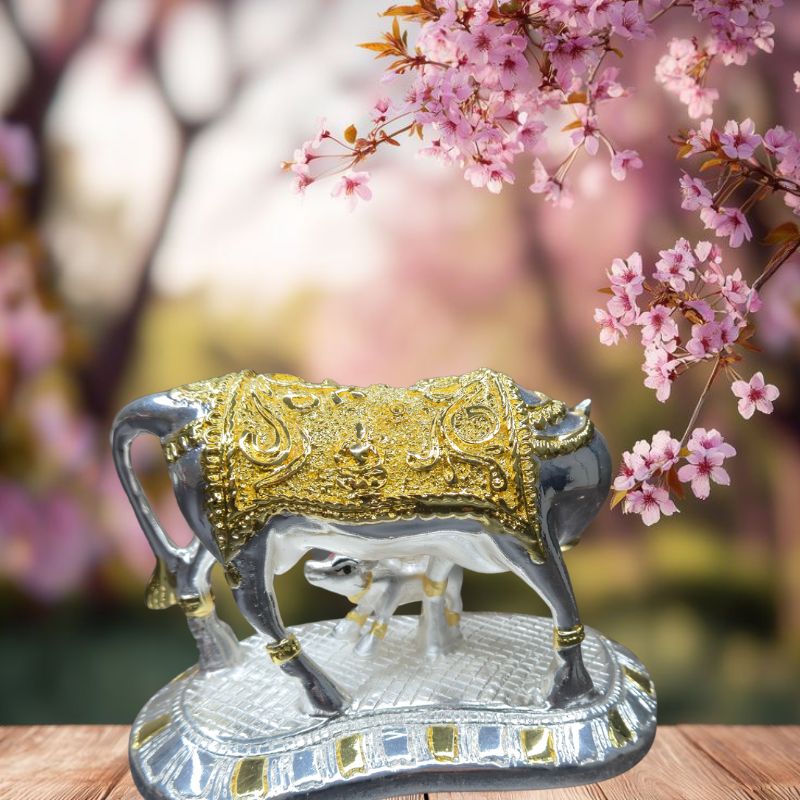 Place this Golden & Silver Plated Surbhi (Kamdhenu) Cow Idol in your home or workplace, and let her divine grace bless your life with wealth, well-being, and fulfillment of wishes.