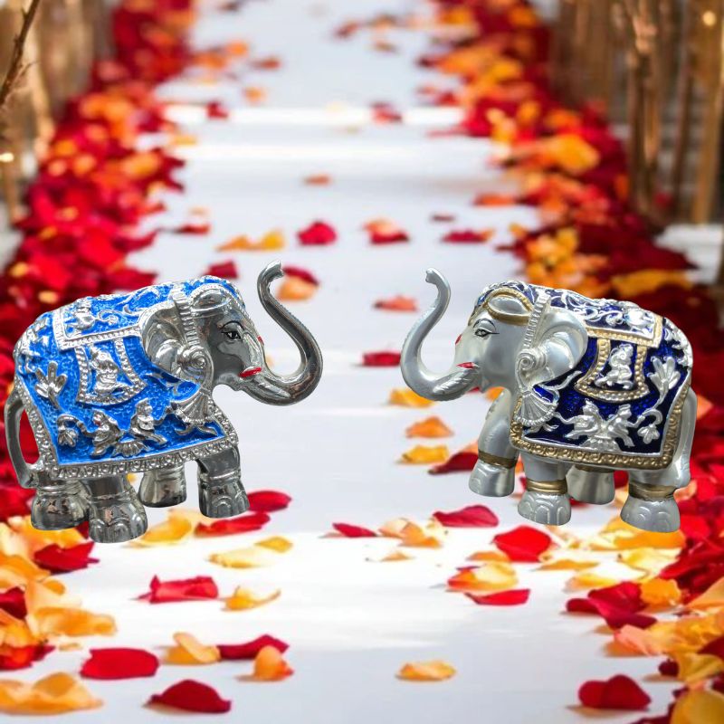 Bring home the divine grace and royal charm of Silver & Gold Plated Elephants, exquisitely crafted to add elegance, positivity, and prosperity to your space. In Indian tradition, elephants are considered symbols of wisdom, strength, and good luck. The dual-tone plating of silver and gold enhances their beauty, making them perfect for home dΓ©cor, puja, or gifting.